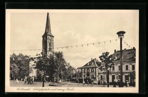 AK St. Wendel, Schlossplatz mit evang. Kirche