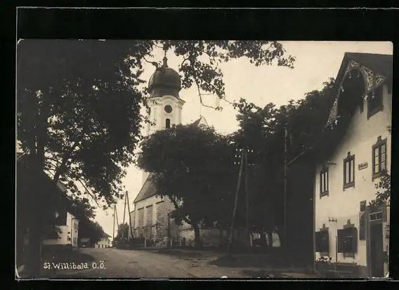 AK St. Willibad, Strassenpartie mit Kirche und Postamt