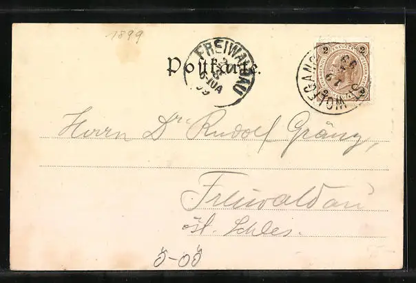 alte Ansichtskarte, gelaufen 1899, guter Zustand