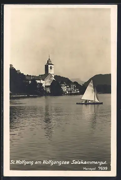 AK St. Wolfgang am Wolfgangsee, Segelboot vorm Ort