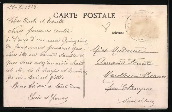 gelaufen 1928, Briefmarke entfernt, guter Zustand
