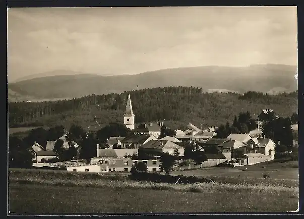 AK Stachy /Sumava, Totalansicht gegen die Berge