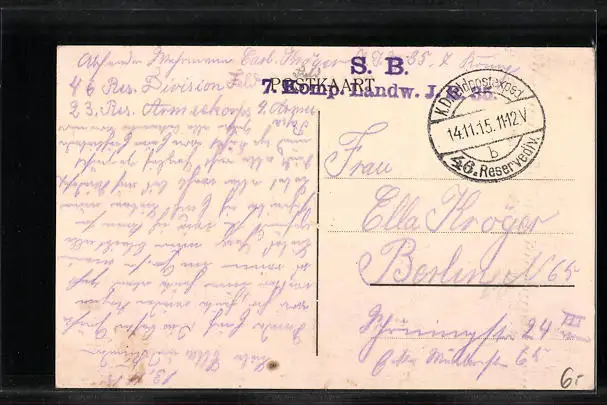 alte Ansichtskarte, gelaufen 1915 als Feldpost, Eckknick li. oben, guter Zustand