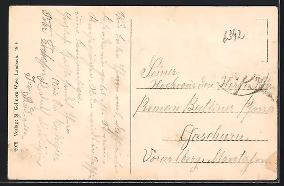 alte Ansichtskarte, gelaufen, Briefmarke entfernt, rückseitig Oberflächenschaden, guter Zustand
