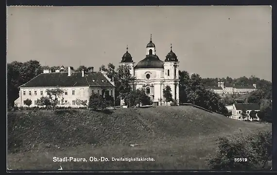 AK Stadl-Paura, Dreifaltigkeitskirche im Sonnenschein