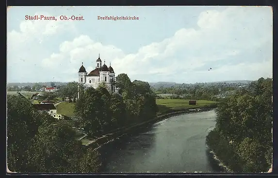 AK Stadl-Paura, Dreifaltigkeitskirche und Fluss