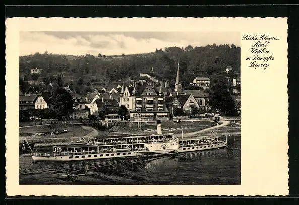 AK Stadt Wehlen, Dampfer Leipzig, Teilansicht