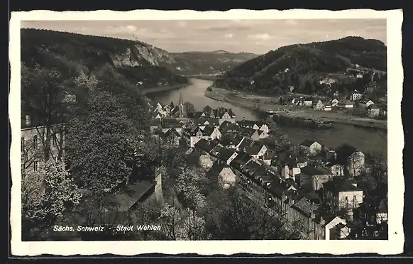 AK Stadt Wehlen /Sächs. Schweiz, Gesamtansicht aus der Vogelschau