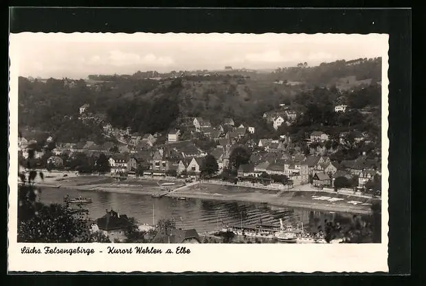 AK Stadt Wehlen / Sächs. Schweiz, Ortsansicht aus der Vogelschau