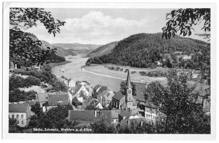 Ansichtskarte Stadt Wehlen Sächs. Schweiz Teilansicht mit Kirche Erhaltung I-II postalisch gelaufen, gestempelt: unleserlich Druckvermerk: 1951 Herstellungsland: DDR Verlag: Albert Krebs, Leipzig S 3 - 850