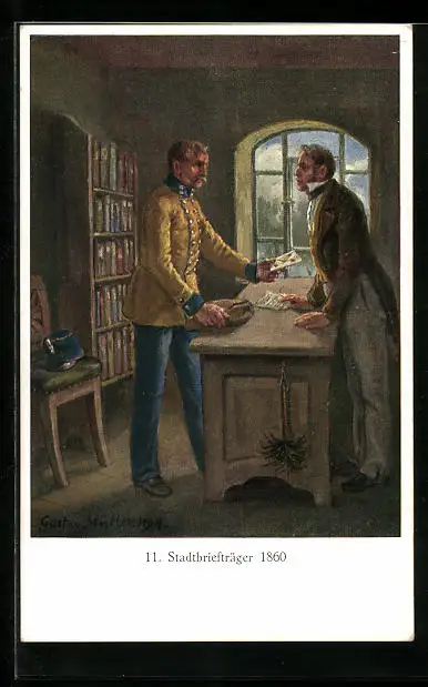AK Stadtbriefträger überbringt einen Brief, 1860