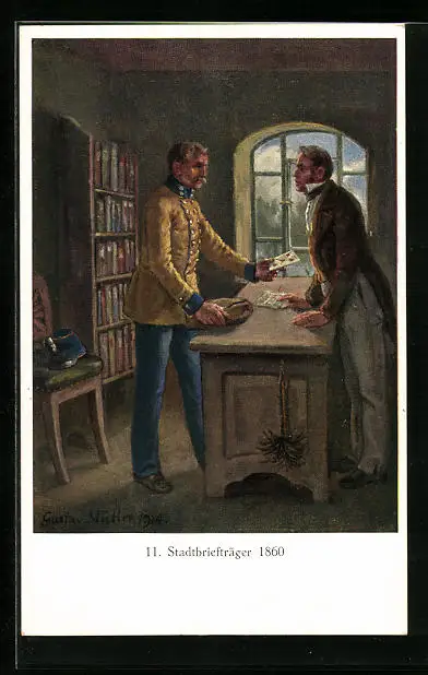 AK Stadtbriefträger überbringt einen Brief, 1860
