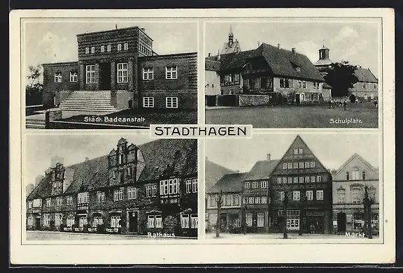 AK Stadthagen, Schulplatz, Markt, Städt. Badeanstalt