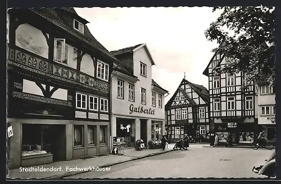 AK Stadtoldendorf, Strassenpartie mit Fachwerkhäusern / Geschäften