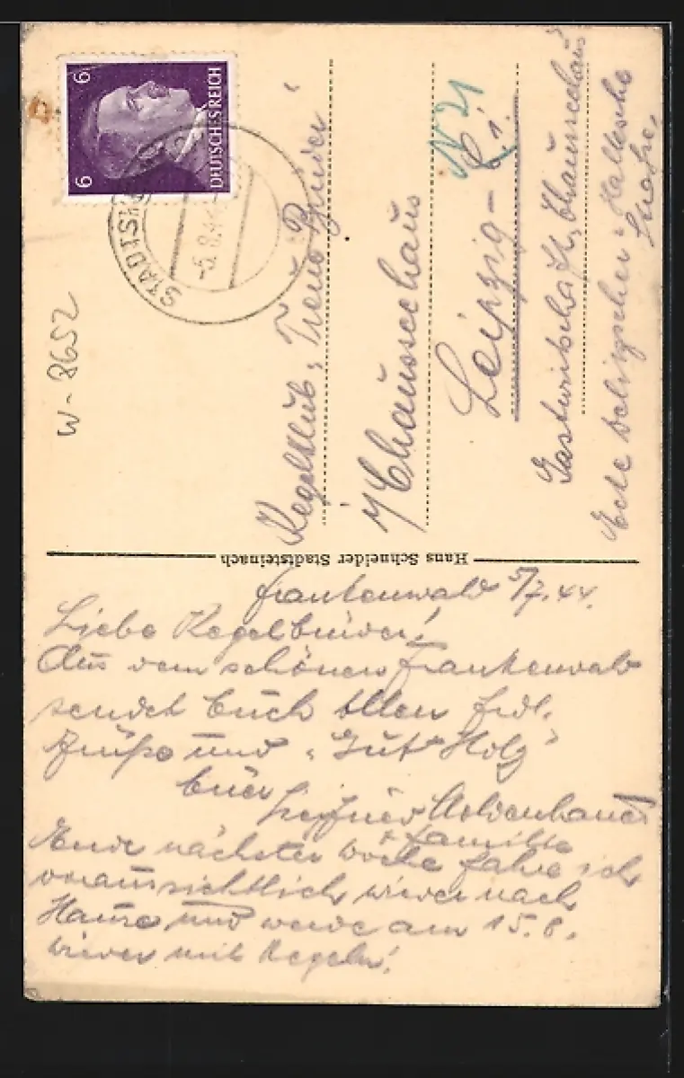 alte Ansichtskarte, gelaufen 1944, Bugspur, guter Zustand