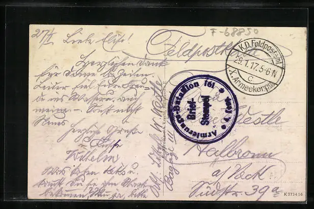 gelaufen 1917 als Feldpost, guter Zustand