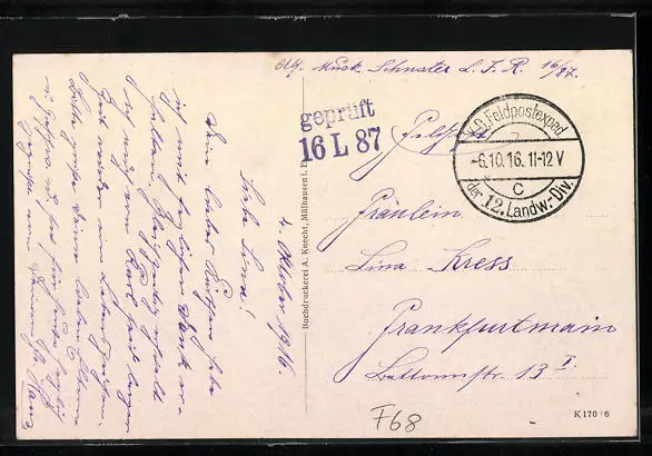 alte Ansichtskarte, gelaufen 1916 als Feldpost, guter Zustand