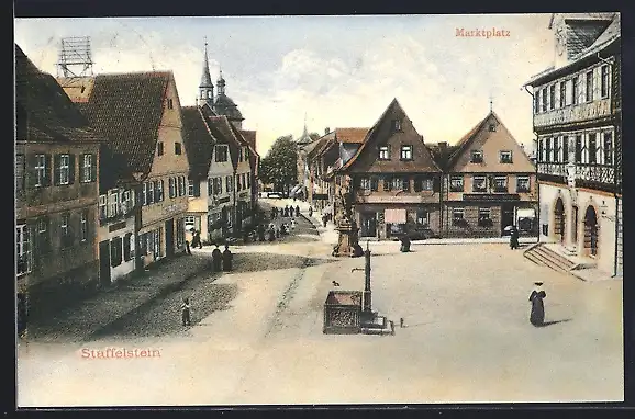 AK Staffelstein / Mainthal, Marktplatz mit Denkmal und Geschäften