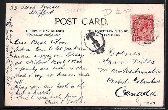 Ein Angebot in Ansichtskarten Staffordshire - 160 weitere Angebote in dieser Kategorie