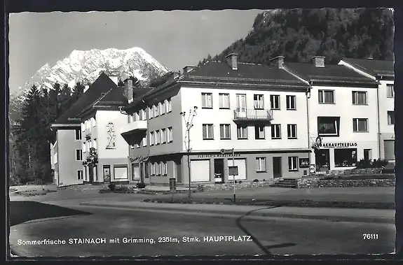 AK Stainach /Stmk., Hauptplatz mit Geschäften und Grimming