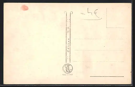 Personenbezogene Daten auf der Rückseite der Karte wurden durch blauen Textmarker unkenntlich gemacht. Die blauen Stellen sind auf die Vorderseite durchgeweicht und wirken sich negativ auf das Postkartenfoto aus