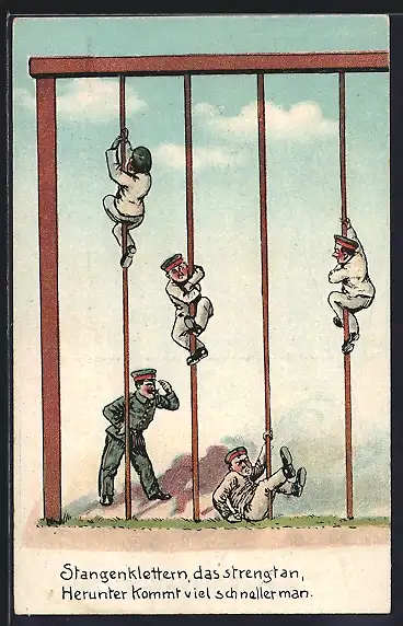 AK Stangenklettern, das strengt an..., Soldatenhumor
