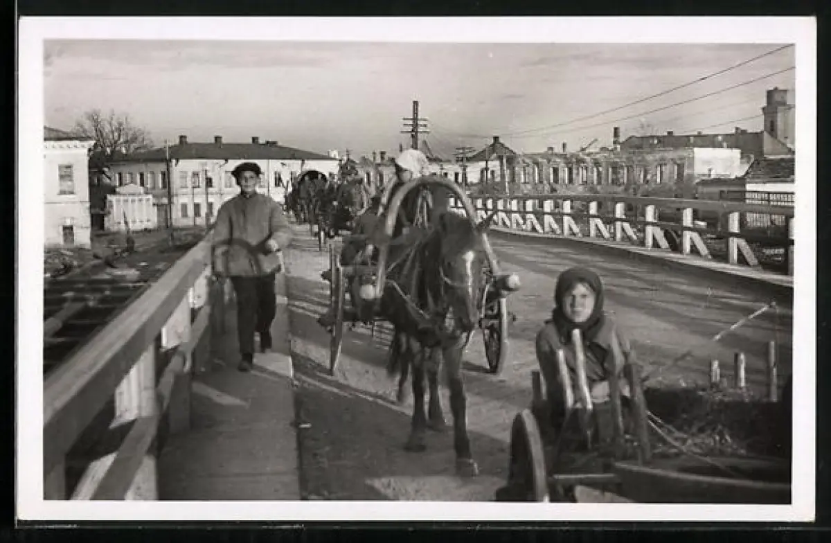 AK Staraja Russa, Schimskerbrücke mit Passanten