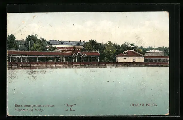 AK Staraja Russa, Wasserpartie mit Blick zu den Häusern