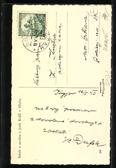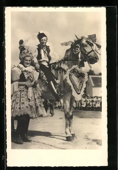 AK Stárek a nevesta z jízdy Králu v Hluku
