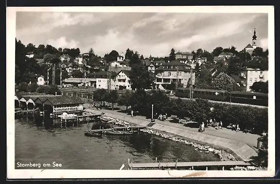 AK Starnberg, Blick auf Bahnhof mit Eisenbahn