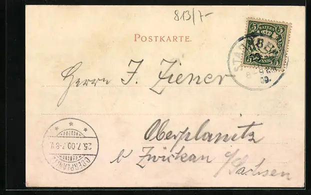 alte Ansichtskarte, gelaufen 1900, guter Zustand