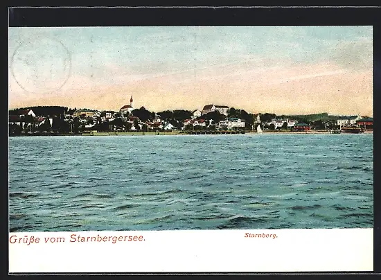 AK Starnberg, Panorama vom Wasser aus gesehen