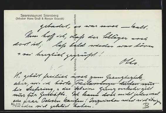 Personenbezogene Daten auf der Rückseite der Karte wurden durch blauen Textmarker unkenntlich gemacht. Die blauen Stellen sind auf die Vorderseite durchgeweicht und wirken sich negativ auf das Postkartenfoto aus