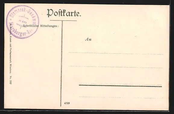 Personenbezogene Daten auf der Rückseite der Karte wurden durch blauen Textmarker unkenntlich gemacht. Die blauen Stellen sind auf die Vorderseite durchgeweicht und wirken sich negativ auf das Postkartenfoto aus