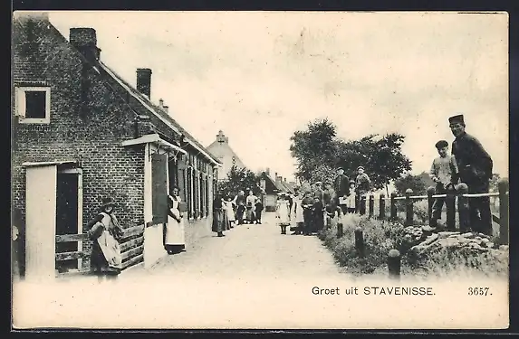 AK Stavenisse, Strassenpartie mit Einwohnern