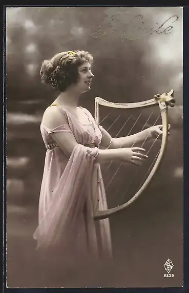 AK Ste Cécile, Junge Frau im Kleid spielt Harfe