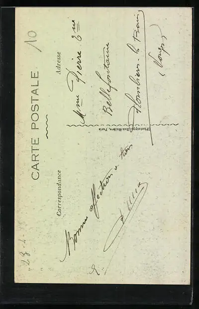 Personenbezogene Daten auf der Rückseite der Karte wurden durch blauen Textmarker unkenntlich gemacht. Die blauen Stellen sind auf die Vorderseite durchgeweicht und wirken sich negativ auf das Postkartenfoto aus