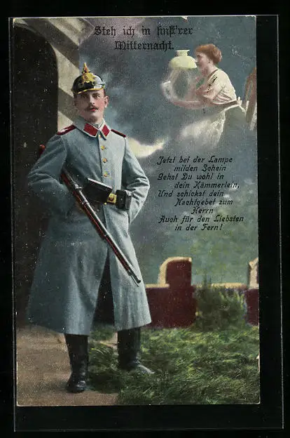 AK Steh ich in finst`rer Winternacht. - Soldat denkt an Geliebte