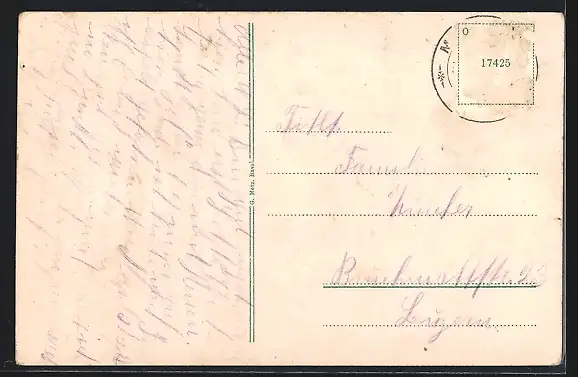 alte Ansichtskarte, gelaufen, Briefmarke entfernt, Eckknick oben li., Bugspur oben, guter Zustand