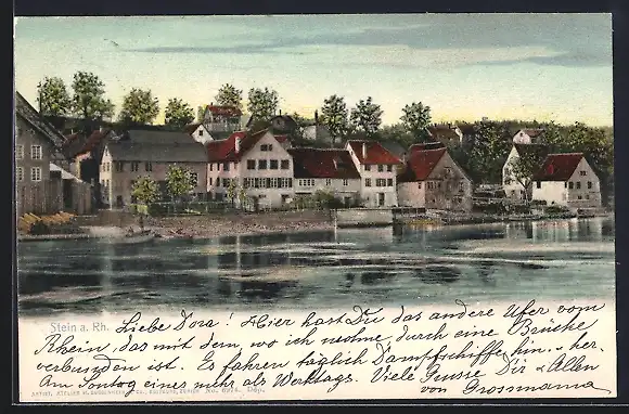 AK Stein a. Rh., Ortsansicht mit Uferpartie