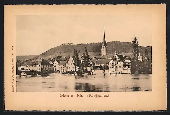 AK Stein a. Rh. /Schaffhausen, Uferpartie mit Kirche