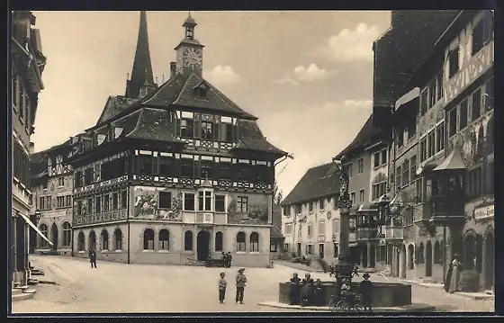 AK Stein a. Rh., Strassenpartie mit Kindern am Rathaus