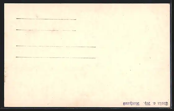 Personenbezogene Daten auf der Rückseite der Karte wurden durch blauen Textmarker unkenntlich gemacht. Die blauen Stellen sind auf die Vorderseite durchgeweicht und wirken sich negativ auf das Postkartenfoto aus