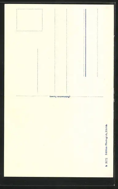 Personenbezogene Daten auf der Rückseite der Karte wurden durch blauen Textmarker unkenntlich gemacht. Die blauen Stellen sind auf die Vorderseite durchgeweicht und wirken sich negativ auf das Postkartenfoto aus