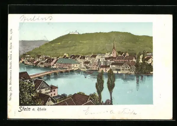 AK Stein a. Rhein, Ortsansicht mit Rheinbrücke
