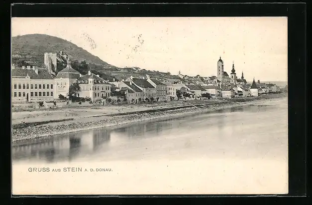 AK Stein a. d. Donau, Teilansicht mit Kirche