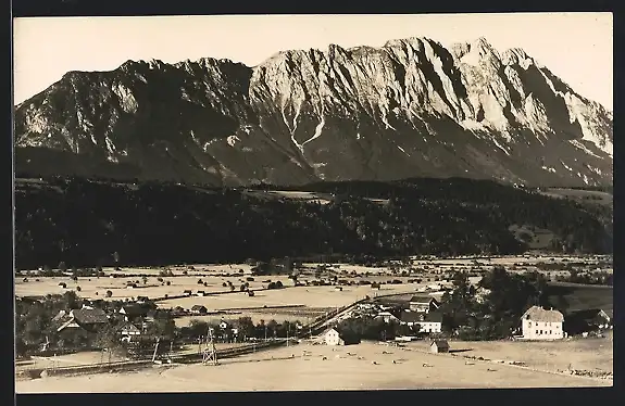 AK Stein a. d. Enns, Totalansicht mit Alpenpanorama