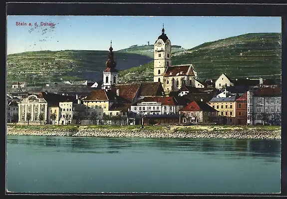 AK Stein a.d. Donau, Ortsansicht mit Kirche