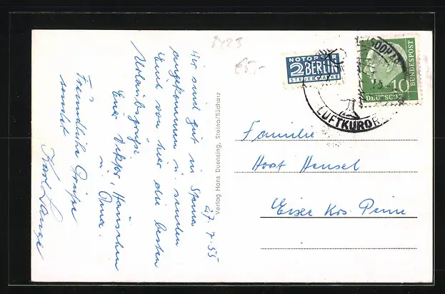 alte Ansichtskarte, gelaufen 1955, Stempelspur, guter Zustand