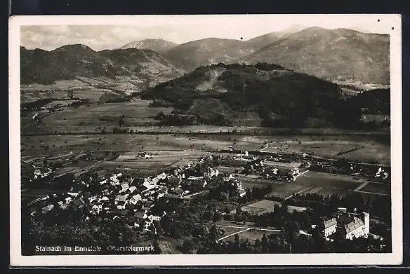 AK Steinach im Ennstale /Obersteiermark, Teilansicht mit Bergen